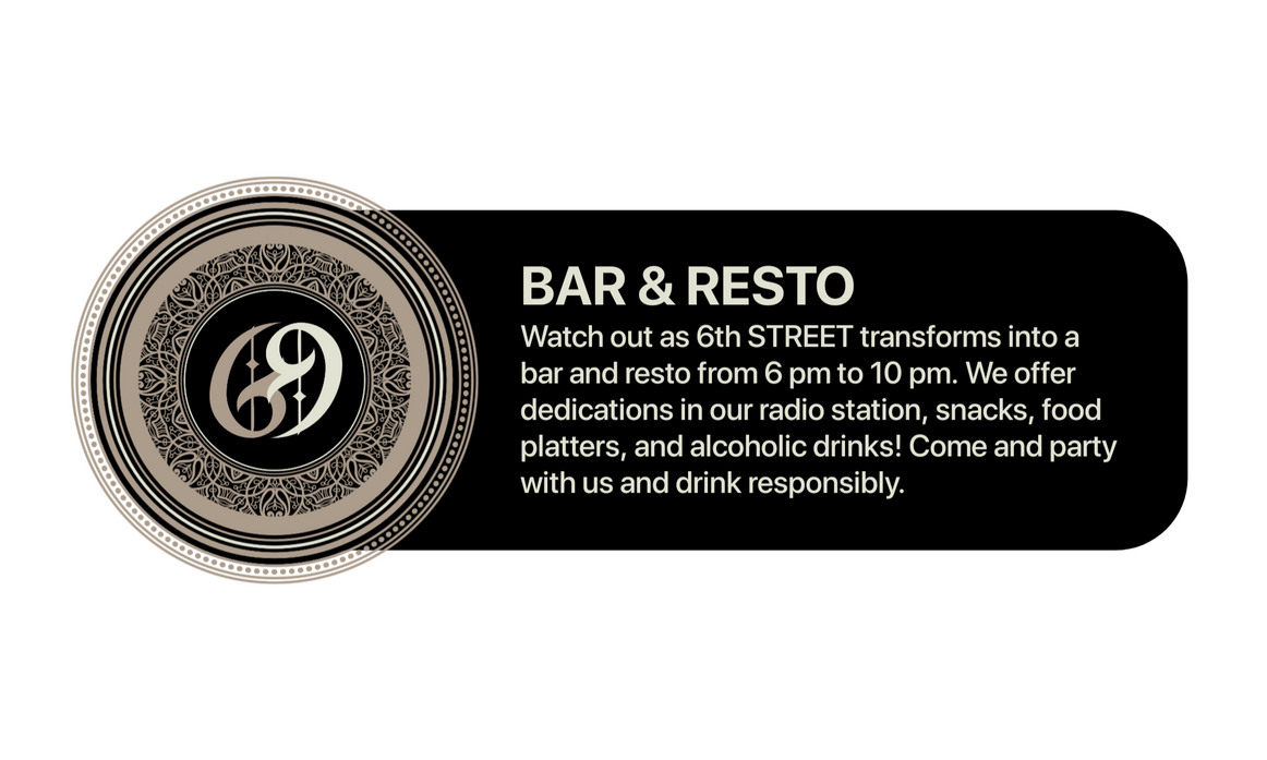 6th STREET, formerly Dunkeat Donuts, is finally back with their new services! Fret not, regular orders and song dedications are still here!What to expect? Hug factory, radio station, cafe & flower shop (opens every morning only), bar & resto (opens every night only).